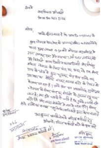 जिसकी प्रार्थना पत्र मै संबधित थाने मे दे कर कार्यवाही की मांग की है,