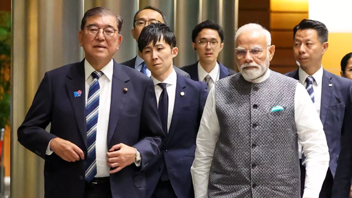 प्रधानमंत्री नरेन्द्र मोदी शनिवार को जापान के मियागी प्रांत के सेंडाई में स्थित एक सेमीकंडक्टर संयंत्र गए। इस दौरान मोदी के साथ उनके जापानी समकक्ष शिगेरु इशिबा भी थे। दोनों देशों के प्रधानमंत्रियों ने तोक्यो से सेंडाई तक का सफर बुलेट ट्रेन से तय किया। मोदी शुक्रवार को दो दिवसीय यात्रा पर तोक्यो पहुंचे थे। इससे पहले प्रधानमंत्री नरेन्द्र मोदी ने शनिवार को तोक्यो में जापान के 16 प्रांतों के गवर्नर से मुलाकात की और भारत-जापान विशेष रणनीतिक एवं वैश्विक साझेदारी के तहत ‘राज्य-प्रांत सहयोग’ को मजबूत किए जाने का आह्वान किया। जापान के विदेश मंत्रालय (एमईए) ने एक बयान में यह जानकारी दी। प्रधानमंत्री ने सोशल मीडिया मंच ‘एक्स’ पर लिखा, ‘‘तोक्यो में आज सुबह जापान के 16 प्रांतों के गवर्नर के साथ बातचीत की।राज्य-प्रांत सहयोग भारत-जापान मैत्री का एक महत्वपूर्ण स्तंभ है। यही कारण है कि कल 15वें वार्षिक भारत-जापान शिखर सम्मेलन के दौरान इस पर अलग से एक पहल की गई।’’ उन्होंने कहा, ‘‘व्यापार, नवोन्मेष, उद्यमिता आदि क्षेत्रों में सहयोग की अपार संभावनाएं हैं। ‘स्टार्टअप’, प्रौद्योगिकी और एआई (कृत्रिम मेधा) जैसे भविष्योन्मुखी क्षेत्र भी लाभकारी हो सकते हैं।’’ पूर्वी और दक्षिण चीन सागर में बीजिंग के बढ़ते शक्ति प्रदर्शन को देखते हुए भारत और जापान ने समकालीन सुरक्षा चुनौतियों से निपटने के लिए अपने रक्षा सहयोग को बढ़ाने के वास्ते शुक्रवार को एक व्यापक रूपरेखा पेश की। इस नयी रूपरेखा की घोषणा तोक्यो में प्रधानमंत्री नरेन्द्र मोदी और उनके जापानी समकक्ष शिगेरू इशिबा के बीच हुई शिखर वार्ता के बाद की गई।वार्ता में दोनों देशों के बीच “विशेष रणनीतिक और वैश्विक साझेदारी” को महत्वपूर्ण रूप से विस्तारित करने पर ध्यान केंद्रित किया गया। रूपरेखा के तहत दोनों पक्षों ने वर्तमान और भावी सुरक्षा आवश्यकताओं के लिए सैन्य उपकरणों तथा प्रौद्योगिकी के सह-विकास एवं सह-उत्पादन की संभावनाएं खंगालने का भी संकल्प लिया।संयुक्त बयान के मुताबिक, वार्ता में मोदी और इशिबा ने कानून के शासन पर आधारित अंतरराष्ट्रीय व्यवस्था को कायम रखने का संकल्प लिया तथा एक स्वतंत्र एवं खुले हिंद-प्रशांत क्षेत्र के प्रति अपनी दृढ़ प्रतिबद्धता दोहराई, जो शांतिपूर्ण, समृद्ध और लचीला हो। बयान के अनुसार, दोनों नेताओं ने चार देशों की सदस्यता वाले क्वाड (चतुष्पक्षीय सुरक्षा संवाद) के एक महत्वपूर्ण एवं स्थायी क्षेत्रीय समूह के रूप में उभरने का स्वागत किया और इस साल के अंत में भारत में आयोजित किए जाने वाले समूह के अगले शिखर सम्मेलन को लेकर उत्सुकता जताई।बयान में कहा गया है कि मोदी और इशिबा ने पूर्वी और दक्षिण चीन सागर की स्थिति पर 