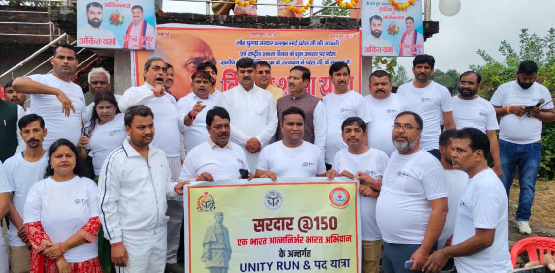 - लखनऊ। गोसाईगंज में सरदार पटेल जी की 150वीं जयंती पर बारिश के बीच आयोजित रन फॉर यूनिटी में भारी भीड़ उमड़ी। कार्यक्रम संयोजक ब्लॉक प्रमुख संघ जिला अध्यक्ष विनय वर्मा डिंपल द्वारा कार्यक्रम का सफल आयोजन किया गया। प्रदेश महामंत्री संगठन धर्मपाल सिंह ने हरी झंडी दिखाकर भीड़ को रवाना किया। कार्यक्रम में प्रदेश मंत्री शिवभूषण सिंह व शंकर लाल लोधी जिला अध्यक्ष विजय मौर्य, मोहनलालगंज के विधायक अमरेश कुमार रावत बीकेटी विधानसभा के विधायक योगेश शुक्ला, नगरपंचायत अध्यक्ष निखिल मिश्रा, पूर्व जिलाअध्यक्ष राम निवास यादव, विधानसभा संयोजक शंभू नाथ पांडे, चंद्रा रावत क्षेत्रीय उपाध्यक्ष, प्रधान संघ अध्यक्ष जितेंद्र कुमार रावत जीतू, जिला पंचायत सदस्य अमरेंद्र भारद्वाज, जिला महामंत्री युवा मोर्चा सुमित सिंह, नागेश्वर द्विवेदी, डीडी त्रिपाठी, हंसराज रावत प्रमुख रूप से शामिल हुए। जिले के कई मंडल अध्यक्ष, वरिष्ठ व कनिष्ठ कार्यकर्ता, ग्राम प्रधानगण व स्कूली बच्चे भी कार्यक्रम में दौड़े। बारिश थोड़ी देर रुक जाने के कारण एक बड़ा व सफल कार्यक्रम संपन्न हुआ। राष्ट्रीय एकता के लिए दौड़ते हुए सभी लोग पटेल पार्क पहुंचे जहां पर सरदार वल्लभ भाई पटेल की प्रतिमा पर अतिथिगणों ने माल्यार्पण कर श्रद्धा सुमन अर्पित किए। कार्यक्रम का समापन गोसाईगंज ब्लॉक परिसर में किया गया। जहां सबके लिए चने के साथ ताजे मट्ठे की व्यवस्था की गई थी। कार्यक्रम संयोजक विनय वर्मा डिंपल ने सभी आगंतुकों के प्रति आभार प्रकट किया।