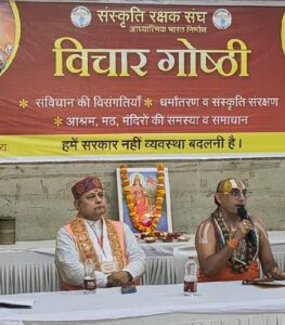 संविधान की विसंगतियां , धर्मान्तरण व संस्कृति संरक्षण एवं मठ मंदिरों की समस्या एवं उनके समाधान विषय पर अपने चिंतन व विचार प्रस्तुत किये।दीप प्रज्वजन् , शन्ख् ध्वनि एवं वेद मंत्रोंच्चार के मध्य विचार गोष्ठी का शुभारम्भ संपन्न हुआ, उद्घाटन सत्र मे श्रीमद जगतगुरु रामानुजाचार्य स्वामी श्री योगेश्वराचार्य जी ने सम्बोधित किया ,